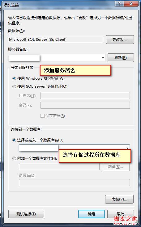 選擇存儲過程所在的服務(wù)器和數(shù)據(jù)庫