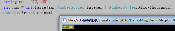 TryParse聽說這個東西在1.0版本的時候只有double才有,從2.0才普及的;TryParse()用法也和Parse()方法差不多,只是他返回的是bool值,通過out把值賦給變量