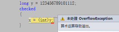 從圖得知上面的轉換拋出了一個溢出異常,顯式轉換都可能不安全, (強扭的瓜就是不甜);但是如果