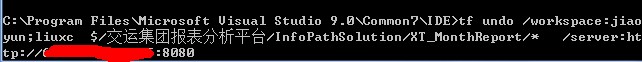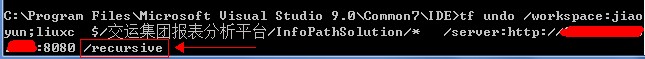 tf undo /workspace:Jiaoyun(工作區(qū)名字);mj(用戶名)$/xxx/xxxxx/aaa.csproj(文件所在的路徑) /Server:http://XXX.XXX.XXX.XXX:8080(TFS服務(wù)器)