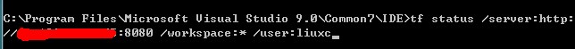 3、查看那個(gè)人掛起的更改:tf status /server:http://XXX.XXX.XXX.XXX:8080 /workspace:* /user:liuxc