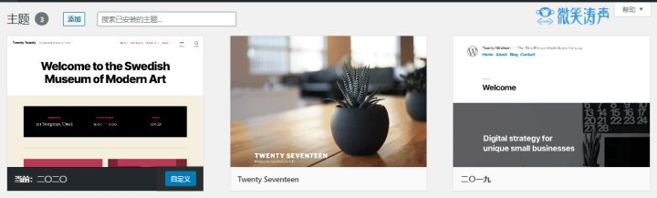 12、回到后臺(tái),點(diǎn)擊外觀—主題,可以看到默認(rèn)有3個(gè)主題,也可以在主題商店或者自己下載然后進(jìn)行安裝。