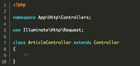 運(yùn)行完成后會(huì)生成一個(gè) app/Http/Controllers/ArticleController.php 文件