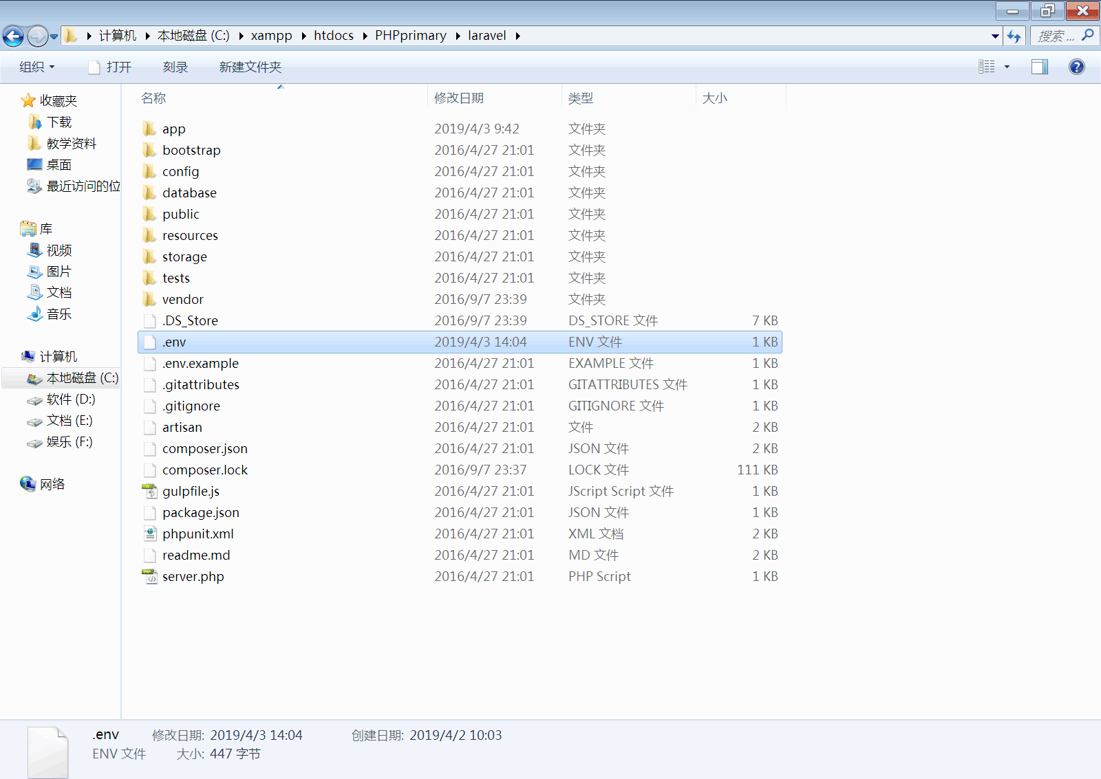 這個(gè)時(shí)候,我們的數(shù)據(jù)庫已經(jīng)創(chuàng)建完成了,接下來就是要輸出他,輸出他的時(shí)候就需要我們打開env這個(gè)文件了