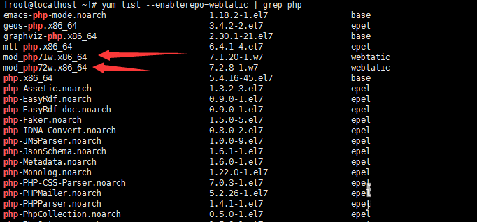 首先我們先檢查一下我們之前的php版本,通過yum list installed | grep php,如果沒有輸出信息說明是沒有安裝php