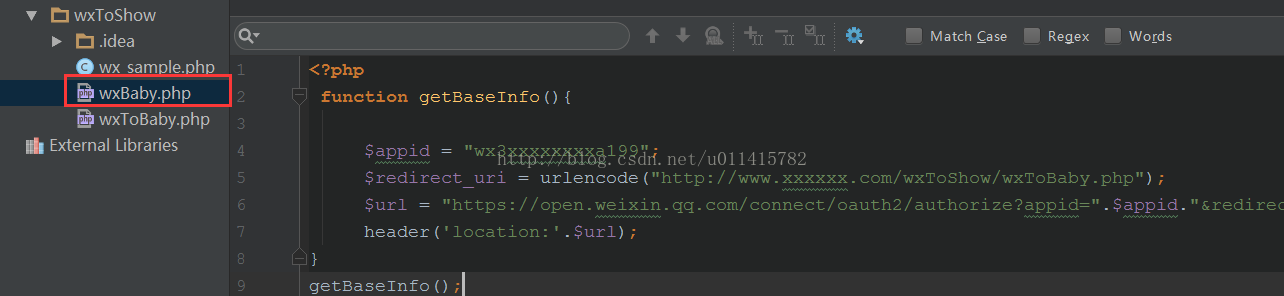 注意 appid 的正確填寫,其次就是 redirect_uri 的地址確定,我提供的可作參考。再者對(duì)于下面代碼中的url中“scope=snsapi_userinfo”可以自行控制,需要分辨 snsapi_base 和 snsapi_userfo 的簡單區(qū)別,百度可有很多具體解釋。