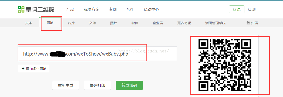(1).使用“草料二維碼”生成微信可掃描的二維碼,然后使用手機(jī)掃描即可: