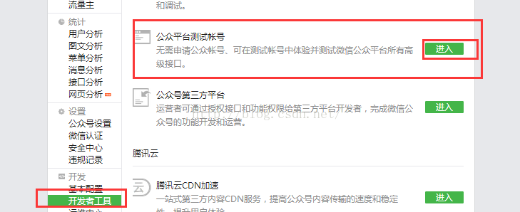 (2).因?yàn)槲覀€(gè)人學(xué)習(xí)申請(qǐng)的是訂閱號(hào),好多功能不開放,進(jìn)而選擇了“公眾平臺(tái)測(cè)試賬號(hào)”