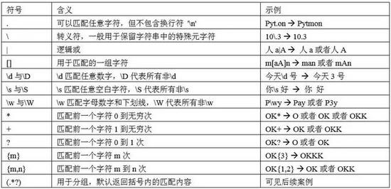 在進(jìn)入字符串的匹配之前,先來(lái)了解一下都有哪些常用的正則符號(hào),見(jiàn)下表所示: