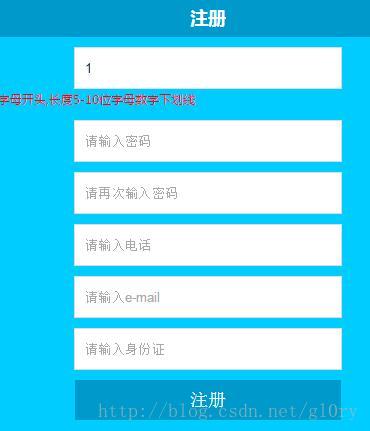 效果圖:(當(dāng)用戶填寫的信息不符合規(guī)范時(shí)顯示錯(cuò)誤提示)