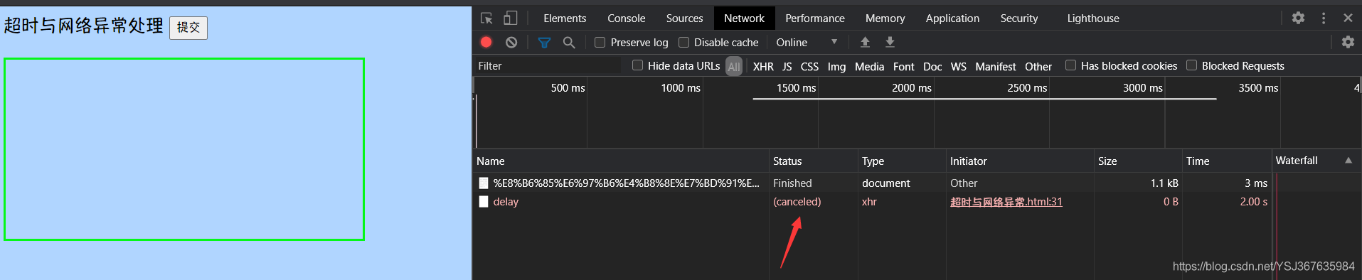 超過了請求的閾值(2s),此時顯示請求被取消了,顯示cancel狀態(tài),而不是finish