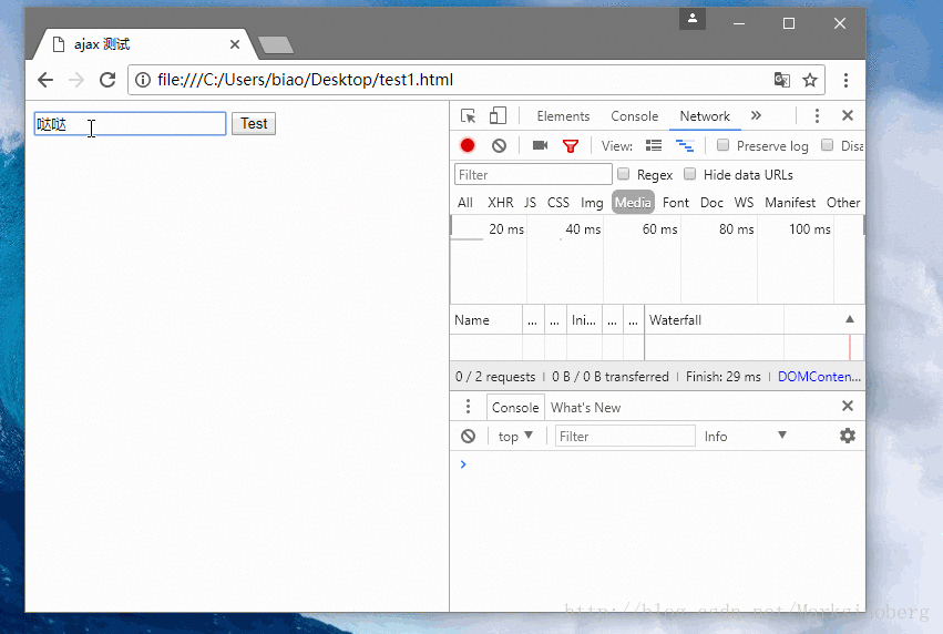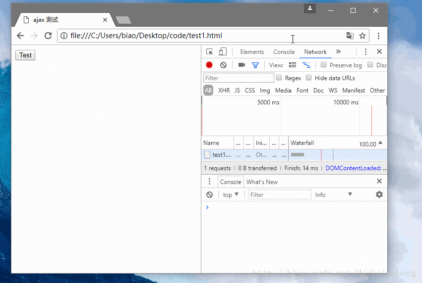 剛才是HTML文件和php文件都在Apache的容器下,所以沒有出現(xiàn)跨域的情形,現(xiàn)在把HTML文件放到桌面上,這樣再次請求PHP數(shù)據(jù)的話,就營造了這樣一個(gè)“跨域請求”了。