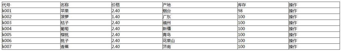 str += "tr>td>"+lie[0]+"/td>td>"+lie[1]+"/td>td>"+lie[2]+"/td>td>"+lie[3]+"/td>td>"+lie[5]+"/td>td>操作/td>/tr>"; //顯示的行和單元格