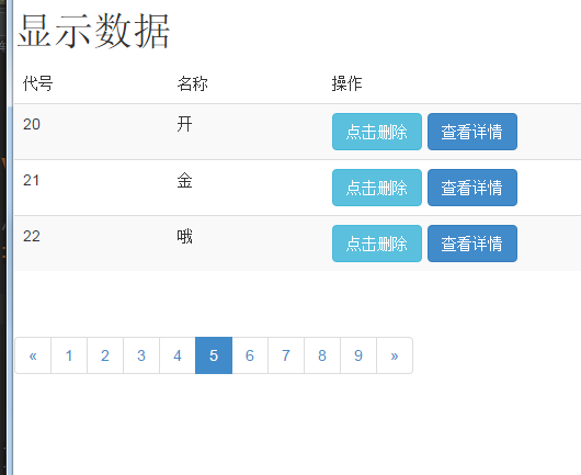 好的,每頁先是三條數(shù)據(jù)已經(jīng)實現(xiàn)了,(頁面變成這樣我用了美化網(wǎng)頁的Bookstrap,前面有講到)