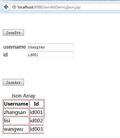 點(diǎn)擊 JsonStr 和 JsonArr 按鈕后的效果