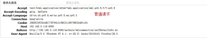 當(dāng)然可以,而且很容易實(shí)現(xiàn)!但有一點(diǎn),我們需要判斷一下HTTP請(qǐng)求是否為Ajax請(qǐng)求(因?yàn)锳JAX請(qǐng)求和普通的請(qǐng)求需要分開處理),這又如何判斷呢?其實(shí)Ajax請(qǐng)求和普通的HTTP請(qǐng)求是不同的,這體現(xiàn)在HTTP請(qǐng)求的頭信息中,如下所示: