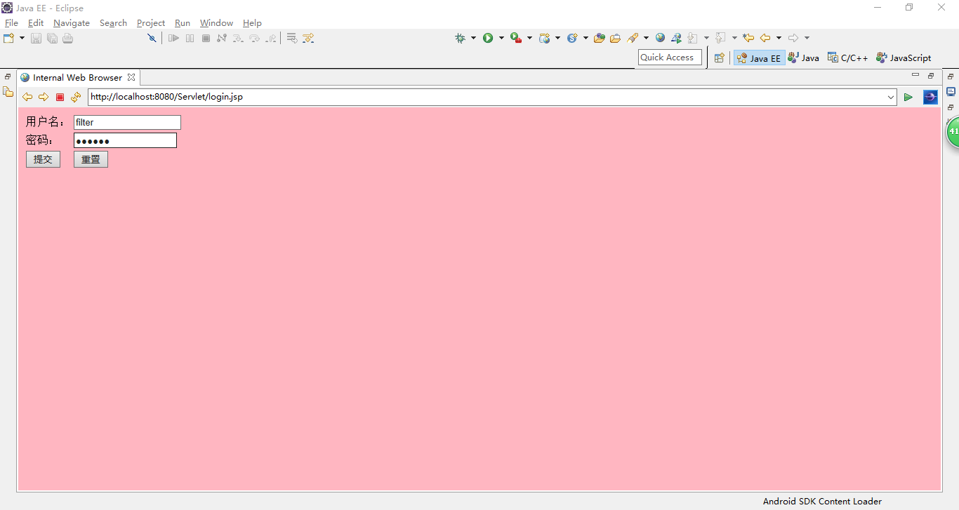 6.在瀏覽器里面輸入http://localhost:8080/Servlet/login.jsp運(yùn)行之后得到的結(jié)果如下所示: