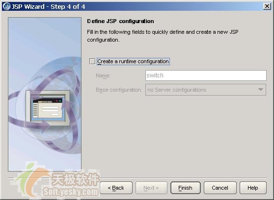 在向導的最后一步,你可以為創(chuàng)建的JSP產生一個運行配置項,雖然向導將創(chuàng)建一個運行配置項設置為默認選項,但筆者認為這并不是一個合理的默認值,建議取消create a runtime configuration設置項,不要創(chuàng)建JSP的運行配置項,如下圖所示: