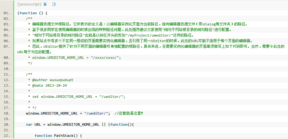 * 因此,UEditor提供了針對(duì)不同頁(yè)面的編輯器可單獨(dú)配置的根路徑,具體來說,在需要實(shí)例化編輯器的頁(yè)面最頂部寫上如下代碼即可。當(dāng)然,需要令此處的URL等于對(duì)應(yīng)的配置。