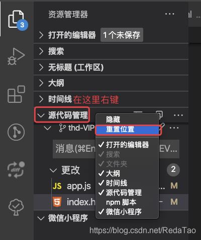 ctrl + shift + G 快捷鍵 => 可以看到 "源代碼管理" => 單擊鼠標右鍵 => 選擇 “重置位置”