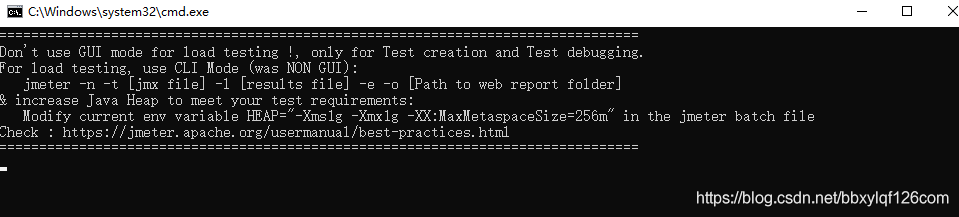 雙擊雙擊jmeter.bat后會出現(xiàn)一個cmd命令框(這個命令框不能關閉),隨后會彈出命令行界面,如下圖所示: