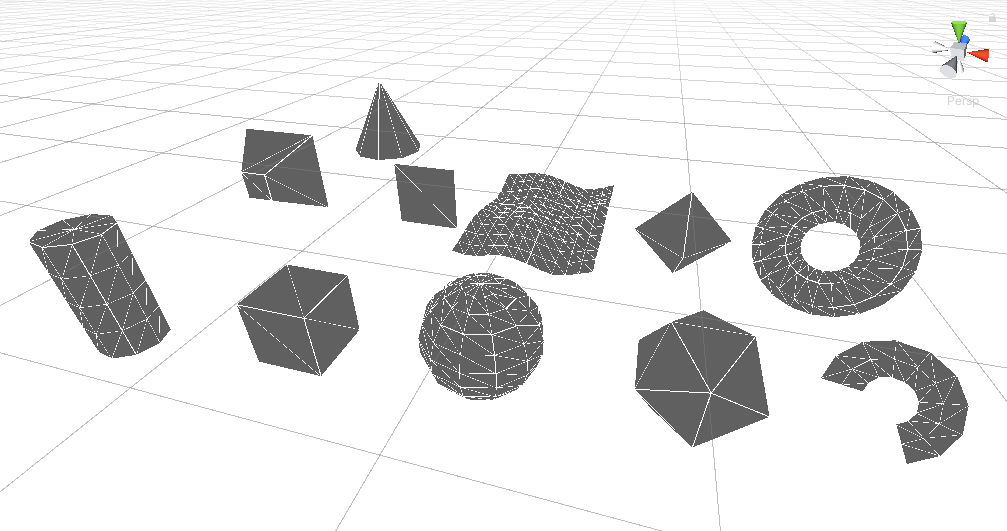 下面這些就是使用純代碼創(chuàng)建出來的幾何體網(wǎng)格,感興趣的同學(xué)可以下載項目源碼下來學(xué)習(xí)。