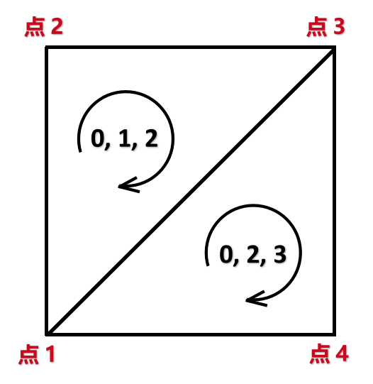 即三角形序列為:{ 0, 1, 2, 0, 2, 3 },注意序號是從0開始的。
