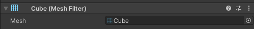 MeshFilter是網(wǎng)格過濾器,我們需要通過它設(shè)置引用的網(wǎng)格資源,比如這里引用的是一個Cube(正方體)網(wǎng)格。