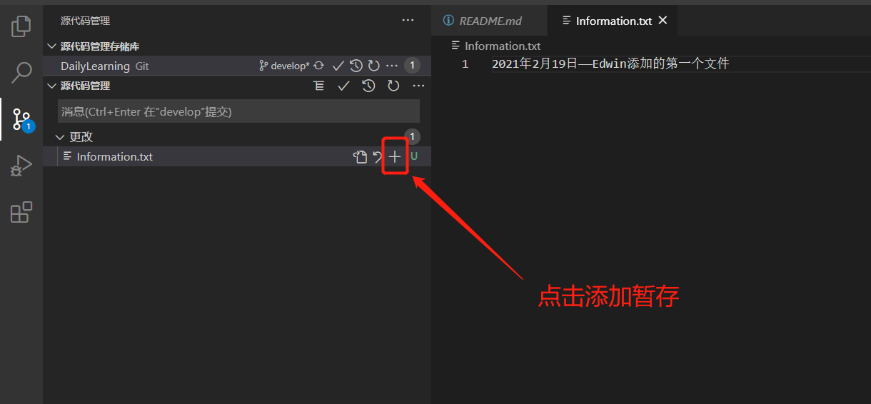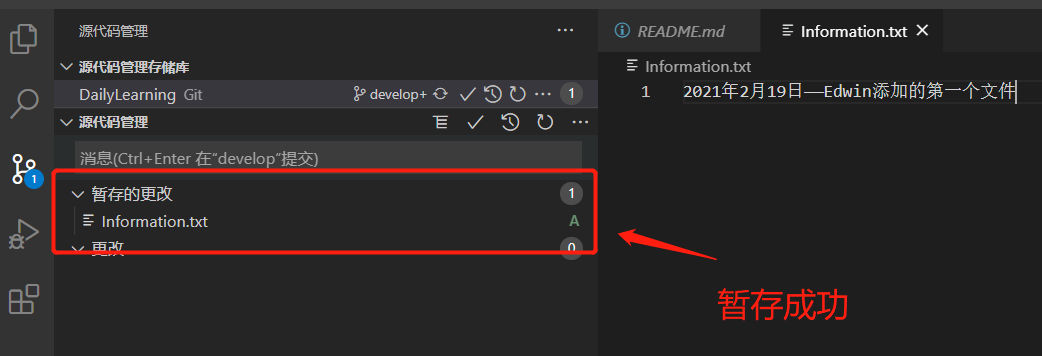 新增Information.txt文本文件,添加至本地暫存區(qū)。