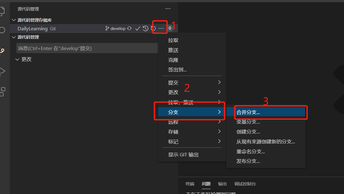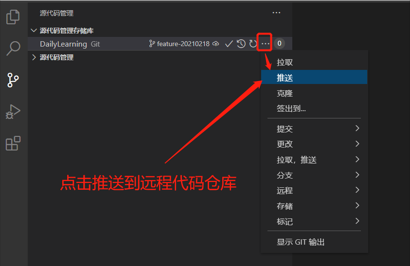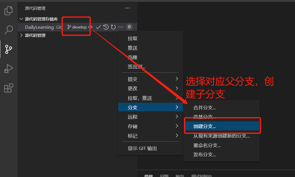 創(chuàng)建分支并推送到遠程代碼庫:1、切換到源代碼管理視圖: