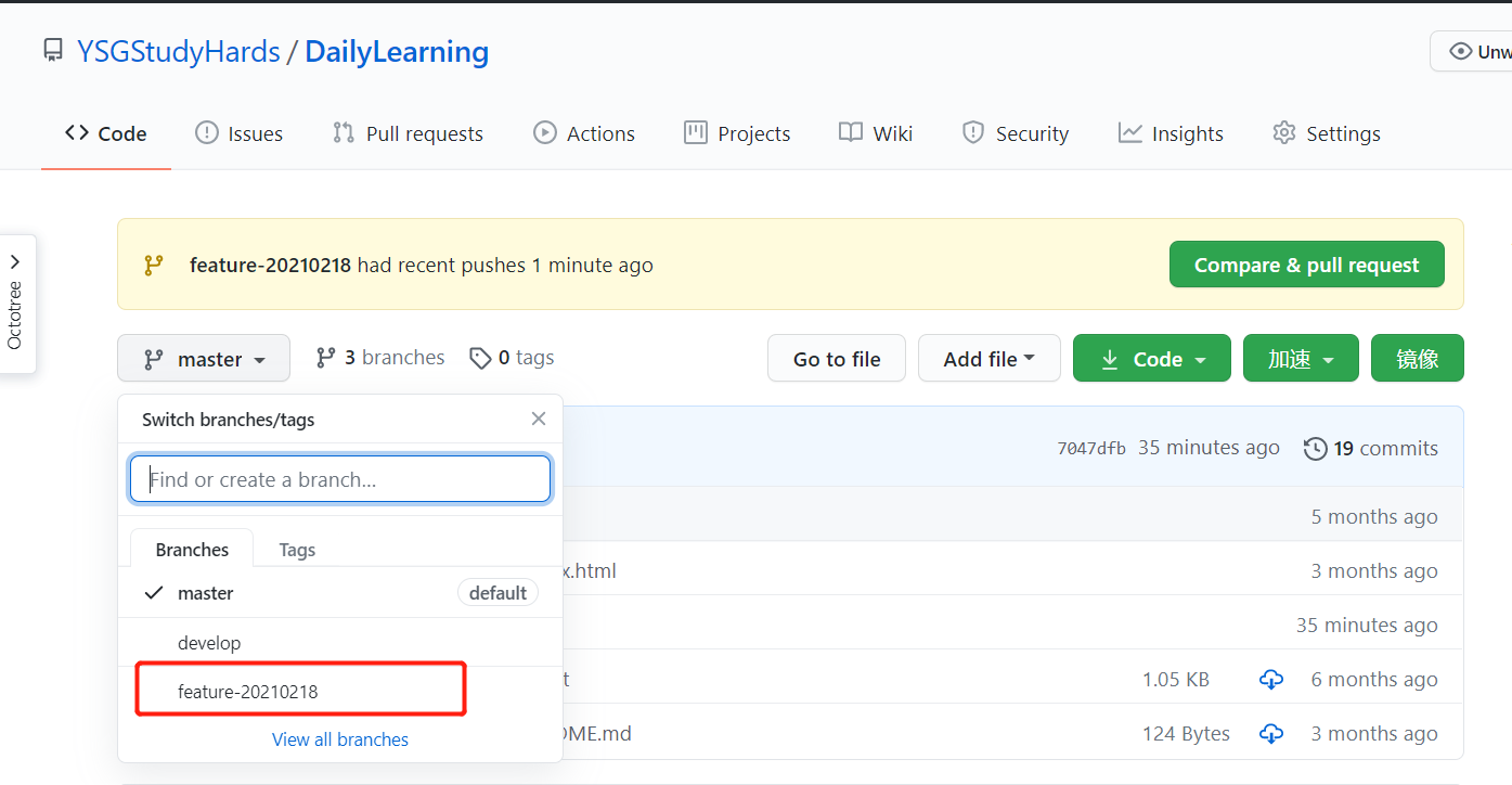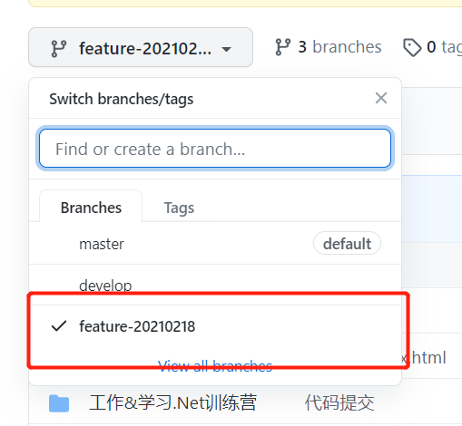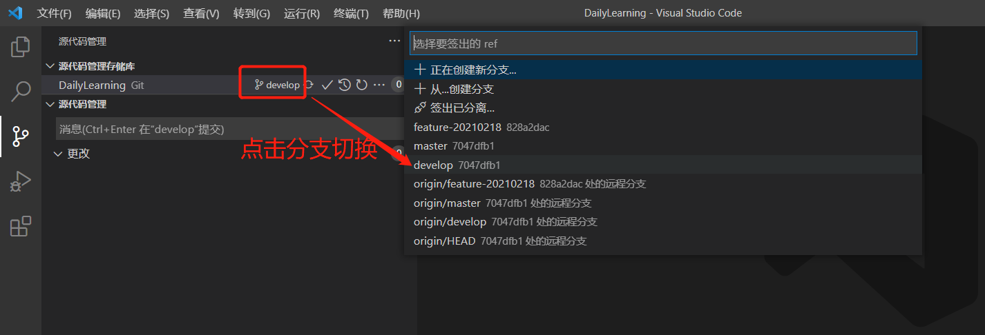注意:我們這里為develop分支創(chuàng)建feature-20210218分支。