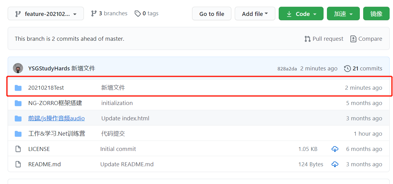 1、feature-20210218子分支中創(chuàng)建一個文件夾和一個文件: