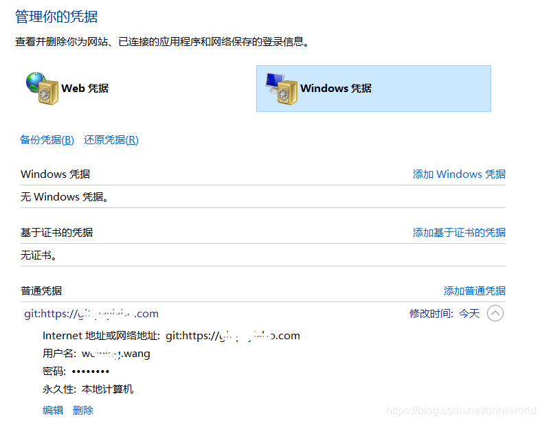 控制面板 -> 用戶帳戶 -> 管理Windows憑據(jù),修改憑據(jù)里的密碼。