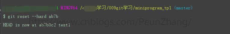 版本號可以不用寫全,輸入前4位或更多也是可以,Git會自動去找,不能只寫前一兩位,因?yàn)镚it可能會找到多個(gè)版本號。比如,看完test3版本的代碼后,現(xiàn)在想回退到最初test1版本,我們找到那個(gè)test1的commit id是ab7b0c2b6e10a20d524156a81f6d4bc15a4ea7f3,然后輸入下面指令就回來了