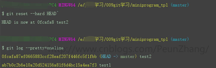現(xiàn)在,我們要把當(dāng)前版本test3上一個(gè)版本test2,就可以使用git reset命令:git reset --hard HEAD^,再查看日志,發(fā)現(xiàn)已經(jīng)剩下2個(gè)commit版本了