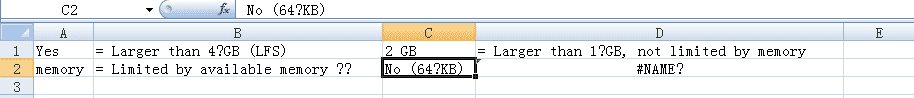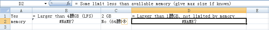 [u'memory', u'= Limited by available memory \xa0\xa0', u'No (64\xa0KB)', u'= Some limit less than available memory (give max size if known)']