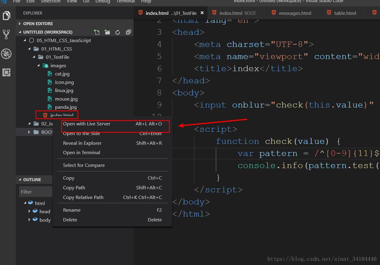 提示:如果之前也有HTML項(xiàng)目,直接把項(xiàng)目根文件夾拖動(dòng)到VScode中就會(huì)自動(dòng)添加到工作區(qū)