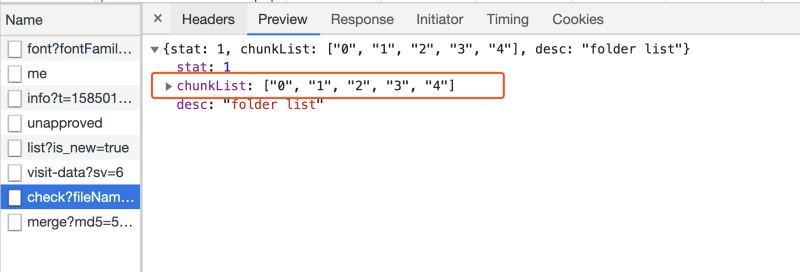 前端得到文件的 MD5 后,從后臺查詢是否存在名稱為 MD5 的文件夾,如果存在,列出文件夾下所有文件,得到已上傳的切片列表,如果不存在,則已上傳的切片列表為空。