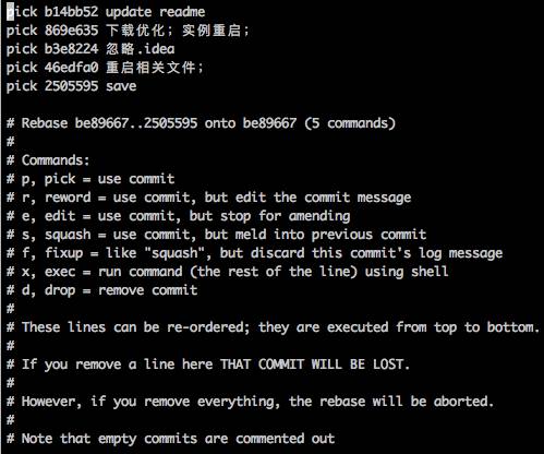 此外還有兩種壓縮日志的辦法: git commit --amend :追加 commit 到上一個(gè) commit 上。 git rebase -i :通過(guò)交互式的 rebase,提供對(duì)分支 commit 的控制,從而可以清理混亂的歷史。