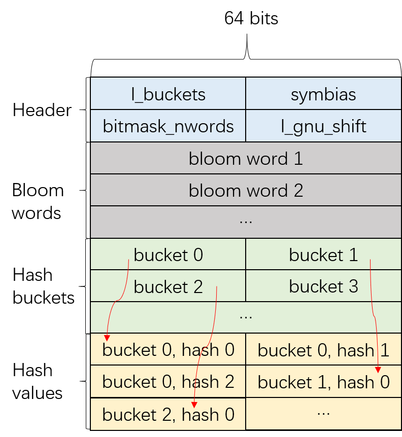 為了便于理解,將.gnu.hash節(jié)中的內(nèi)容畫成示意圖: