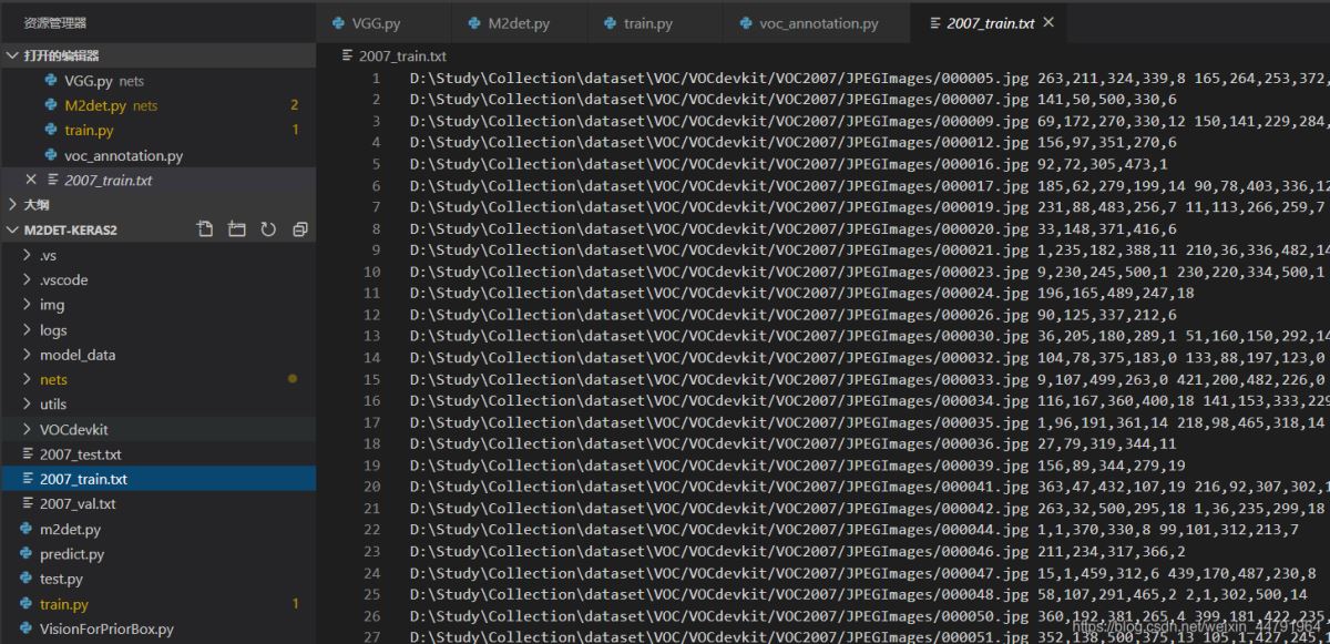 就會生成對應(yīng)的2007_train.txt,每一行對應(yīng)其圖片位置及其真實(shí)框的位置。