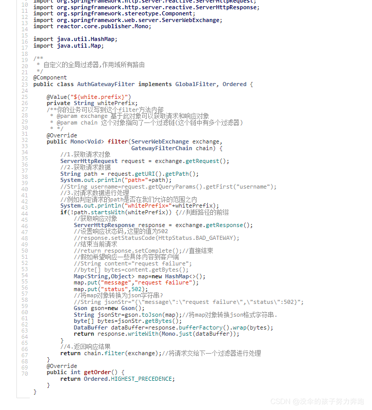 下圖是定義在網(wǎng)關(guān)層面定義全局過濾器