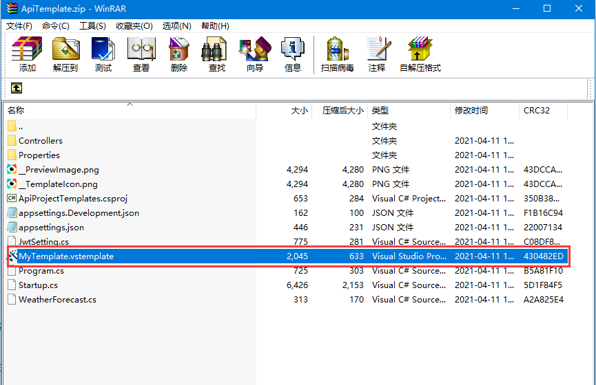 最后將修改的文件打包成zip壓縮(必須為zip文件)文件后,復(fù)制到項(xiàng)目模板所在位置(%USERPROFILE%\Documents\Visual Studio 2019\Templates\ProjectTemplates)