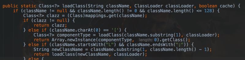 但是在加載的過程中,fastjson有一段特殊的處理,那就是在具體加載類的時候會去掉className前后的L和;,形如Lcom.lang.Thread;。