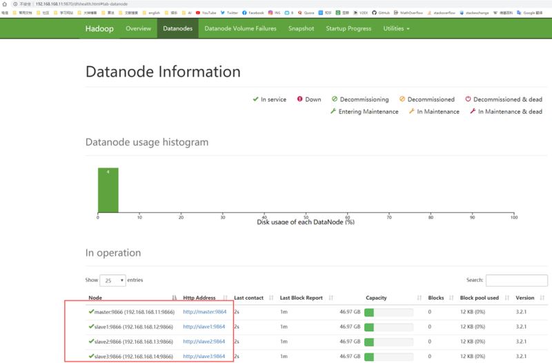 通過master的9870端口可以網頁監(jiān)控http://192.168.168.11:9870/