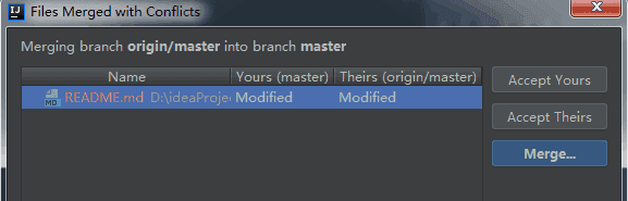 另外,由于我是通過IDEA來操作git的,所以顯示沖突時,我是在圖形化界面操作的示意如下