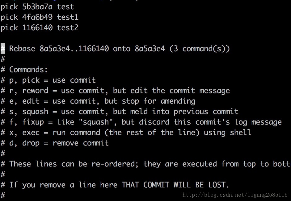 在編輯框中刪除相關(guān)commit,如pick 5b3ba7a test2,然后保存退出(如果遇到?jīng)_突需要先解決沖突)!