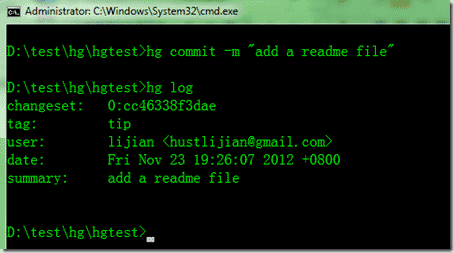 測(cè)試hg的安裝效果 cmd中輸入:hg