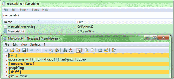 (Windows) "%HOME%\Mercurial.ini"下面是我的配置文件: