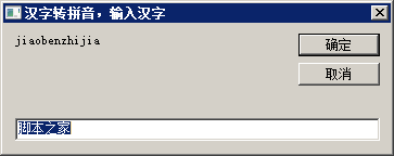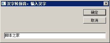 ex=inputbox(c(ex),"漢字轉(zhuǎn)拼音,輸入漢字",ex)